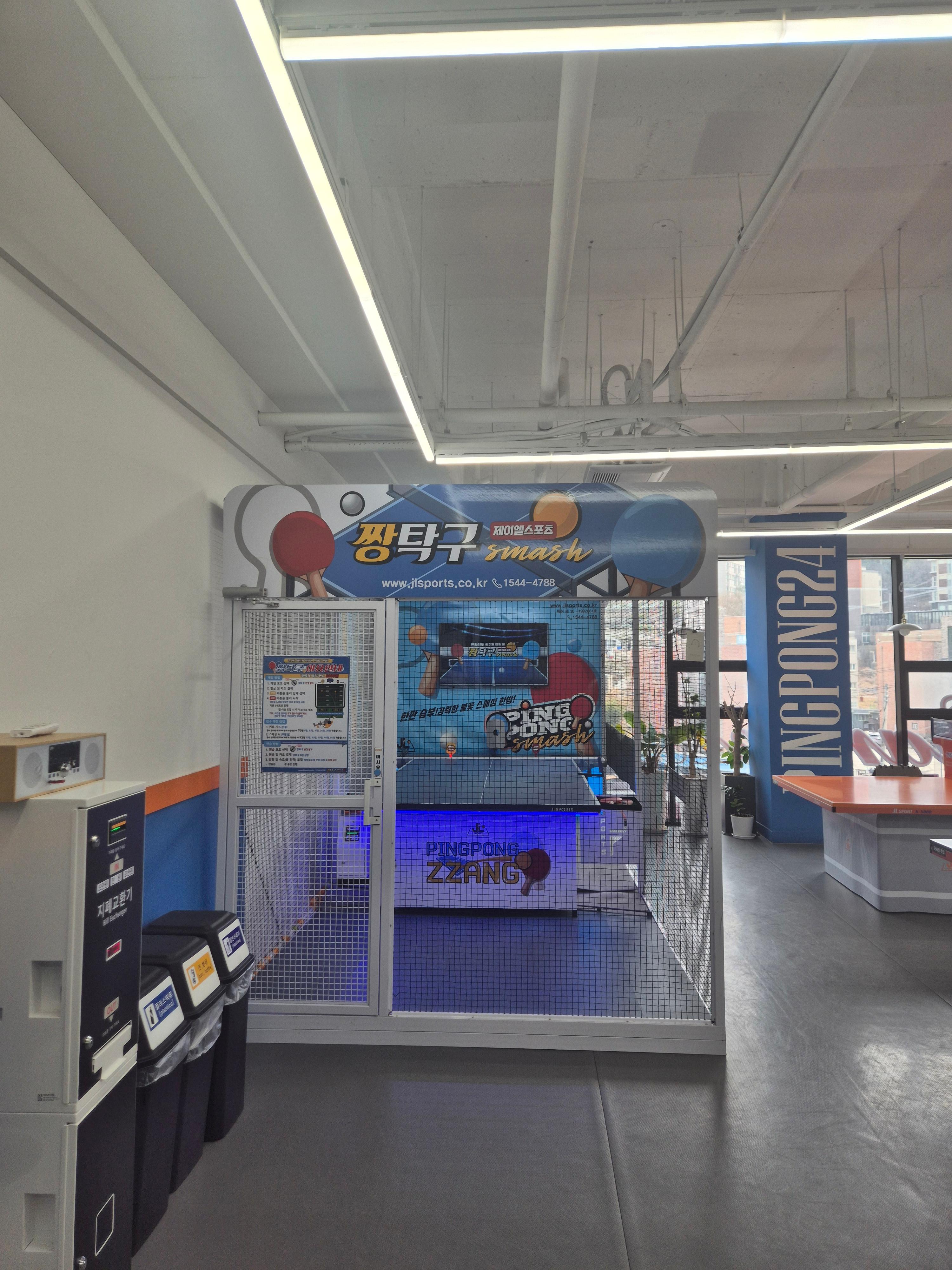 "짱탁구장의 하이라이트! 국내 유일 AI 자동화 로봇이 있어요. 난이도 조절이 가능해서 초보자 연습은 물론, 고수들의 훈련까지 가능합니다. 혼자 와서 땀 흘리고 싶을 때 강추 드려요!"