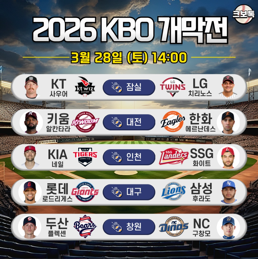 2026 KBO 개막전은 충분히 기대해볼 만한 경기들로 채워질 것 같습니다.